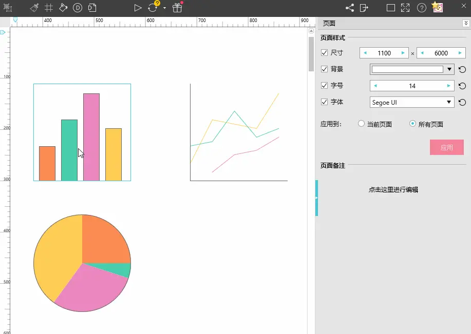③ 将母版从左侧母版管理中拖入工作区即可应用到项目中的任意页面中;