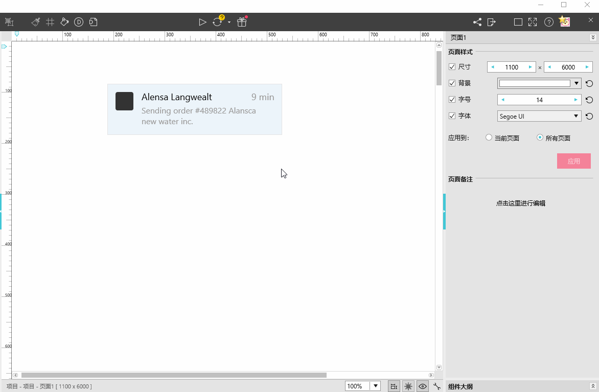 ① 首先,我们需要使用矩形、单行文字、图标等组件,完成单条信息的设计;