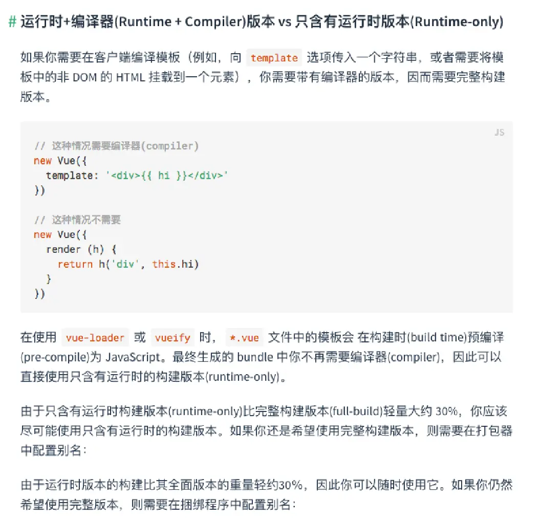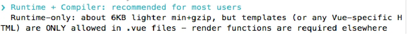 如果在之后的开发中,你依然使用template,就需要选择Runtime-Compiler