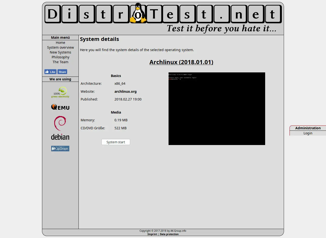 DistroTest 允许你免费在线试用 200 多个 Linux 和 Unix 操作系统而不必在本地安装。你只需要访问网站,选择的你想要试用的 Linux / Unix 发行版,然后启动它就可以了。