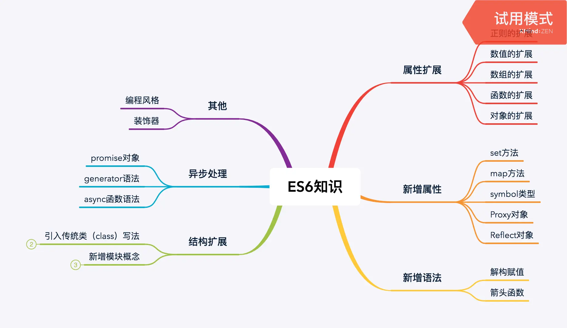 - 模块化:es6引入了模块化的概念,即文件中的内容可以导出到另一个文件中。