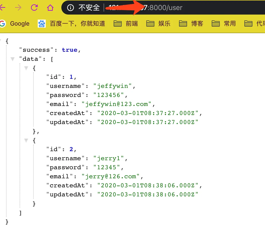 }, {sequelize, modelName: 'user'}); // user表,字段username,pwd,email