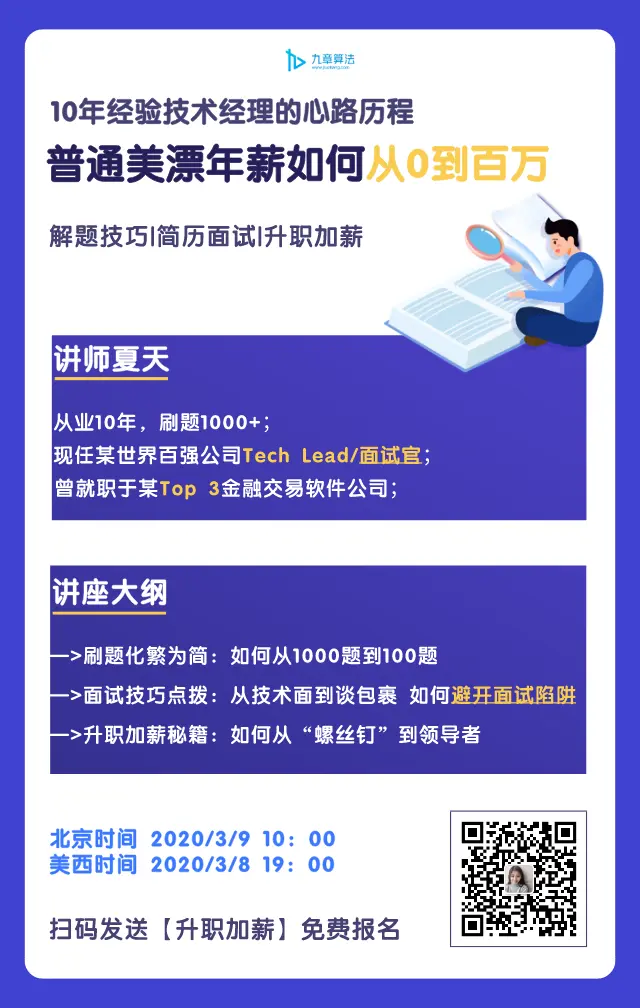[点击免费报名公开课](www.jiuzhang.com/seminar/149…