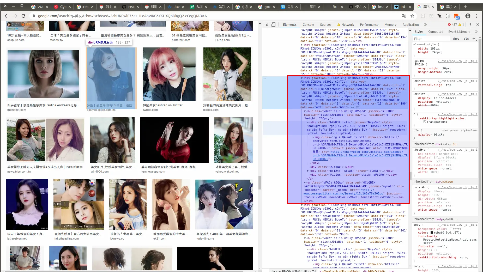 google采用 外层div(margin-right:20,margin-bottom:20)->a(仅包含图片)->div(里层div,包括img,做超出部分的隐藏)->img