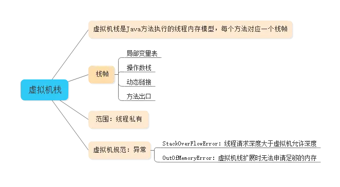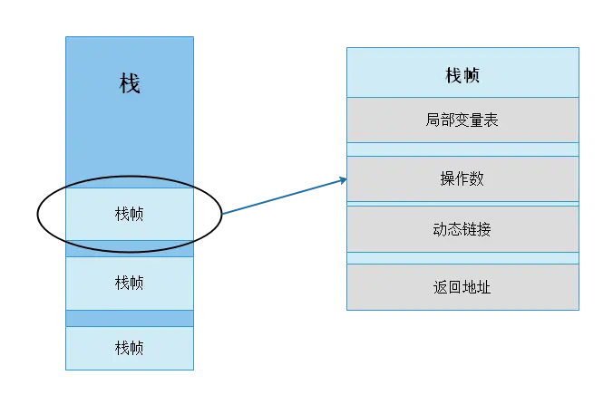 虚拟机栈是Java方法执行的线程内存模型。每个方法的执行,Java虚拟机都会创建一个栈帧存储方法相关变量。每个方法被调用到执行完毕的过程,对应栈帧在虚拟机栈中入栈到出栈的过程。