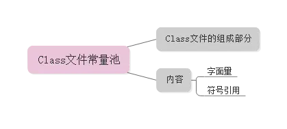 Class 文件常量池,用于存放编译期生成的各种字面量和符号引用,这部分内容将在类加载后进入方法区的运行时常量池中存放。常量池中主要存放两大类常量:字面量和符号引用。当Class文件常量池加载到方法区时,会把符号引用转换为直接引用,存放到运行时常量池。