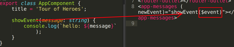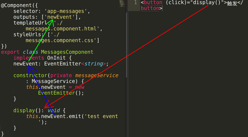 如果想在一个父级的组件中使用这个输出,就要使用我们自己的事件了。下面看一个示例: