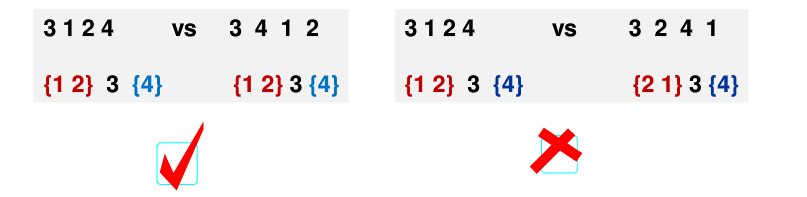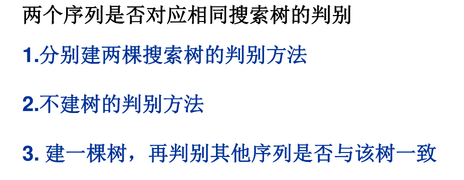 问题:对于输入的各种插入序列,你需要判断它们是否能生成一样的二叉搜索树。