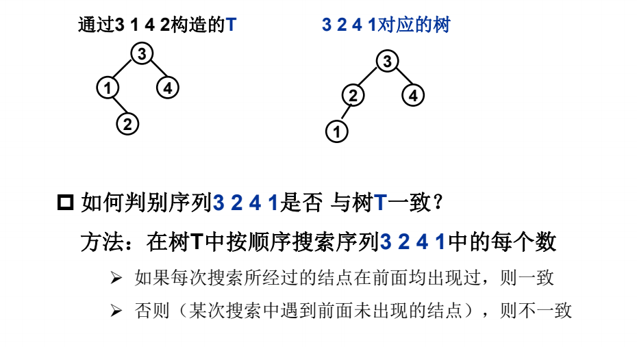 - 例如,按照序列{2,1,3}和{2,3,1}插入初始为空的二叉搜索树,都得到一样的结果