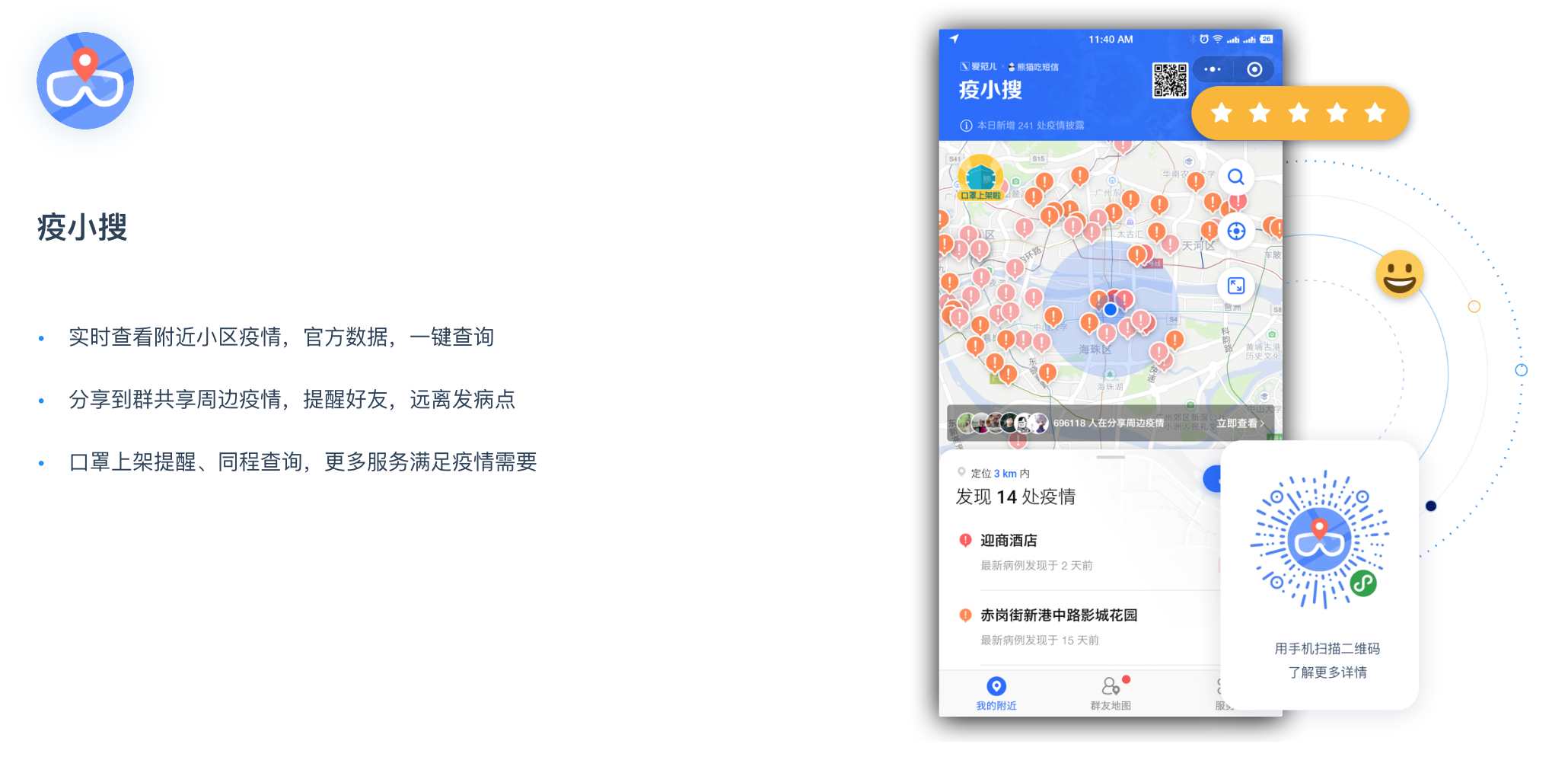 防疫期间,我们推出了「疫小搜」小程序,让你可以实时查看周边疫情。有兴趣了解疫小搜开发技巧的同学,可以通过添加客服微信(minsupport3)等方式告诉我们。