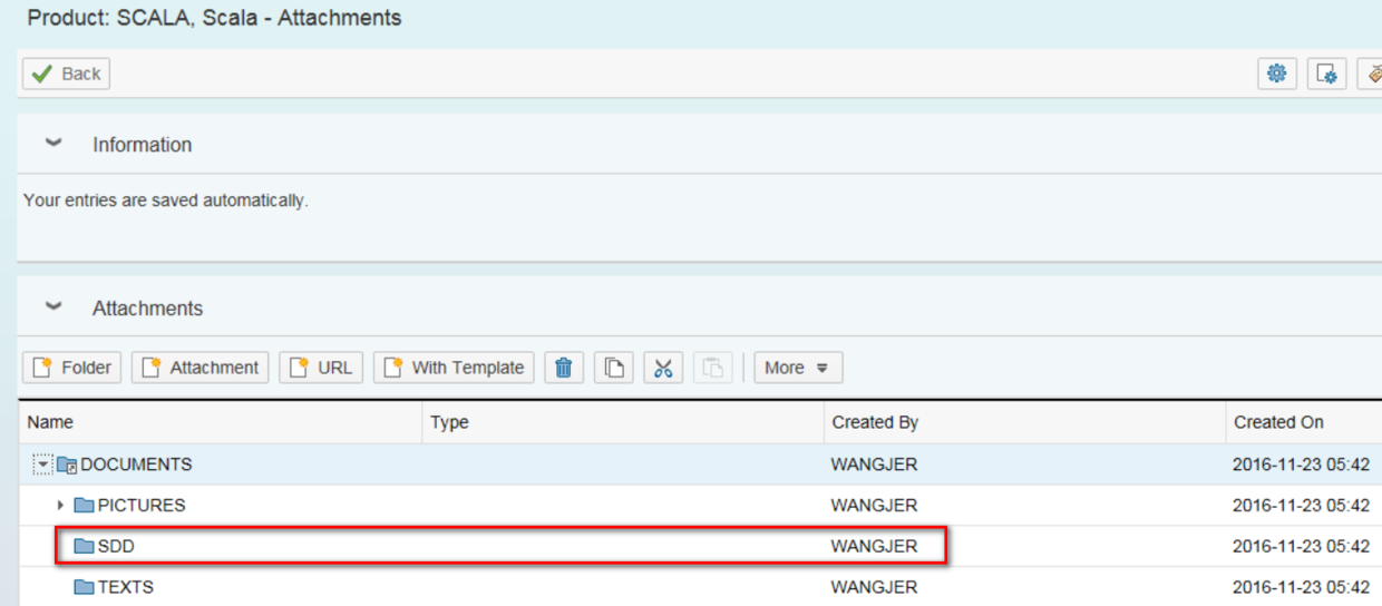 Customer would like to have the following folder structures available automatically for product with type 01. For each folder, various attachment could be put in.