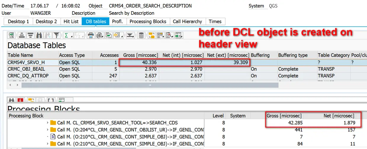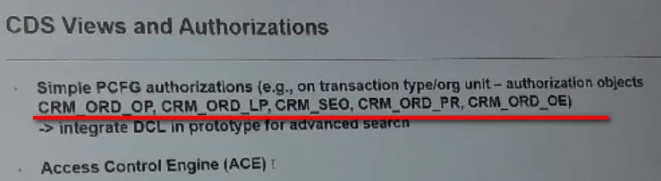CDS view only supports read access so the corresponding DCL concept only applies for Advanced search, since CDS view is only used in advanced search currently. What authorization objects are currently used in advanced search? An Authorization trace is performed on AG3/001 using tcode: stauthtrace Start: enter business role SERVICEPRO, End: click Search button and see result in WebUI
