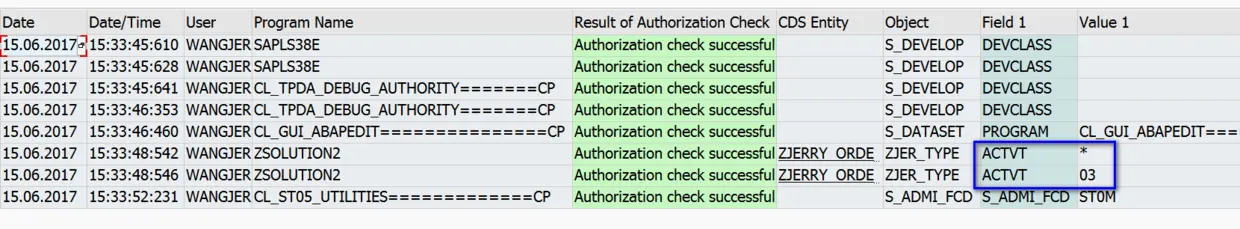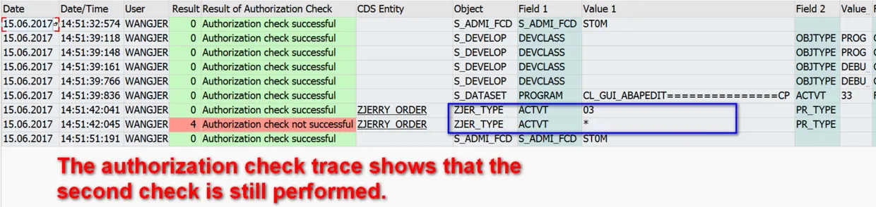 (1) 0 Authorization successful or no check was carried out. An authorization for the authorization object was found in the user master record. Its value sets include the specified values.
