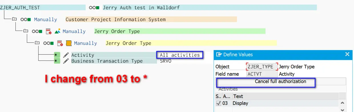 (3) 12 No authorization was found for the authorization object in the user master record. AGR_USERS: This table stores for a given user, what PFCG roles are assigned to it. Z_FULL_AUTHORIZATION created by Wade in X3C/504, but AO is not created by him.