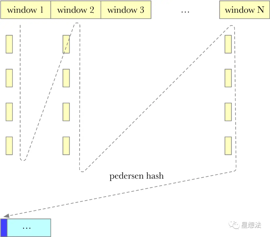 Layer4的256个Window的数据中,同一位置上的Node,拼接在一起,hash后生成Column Hash的结果。注意,Column Hash的计算结果只有一个Window大小。针对Column Hash的计算结果,构造默克尔树tree_c,树根为comm_c。