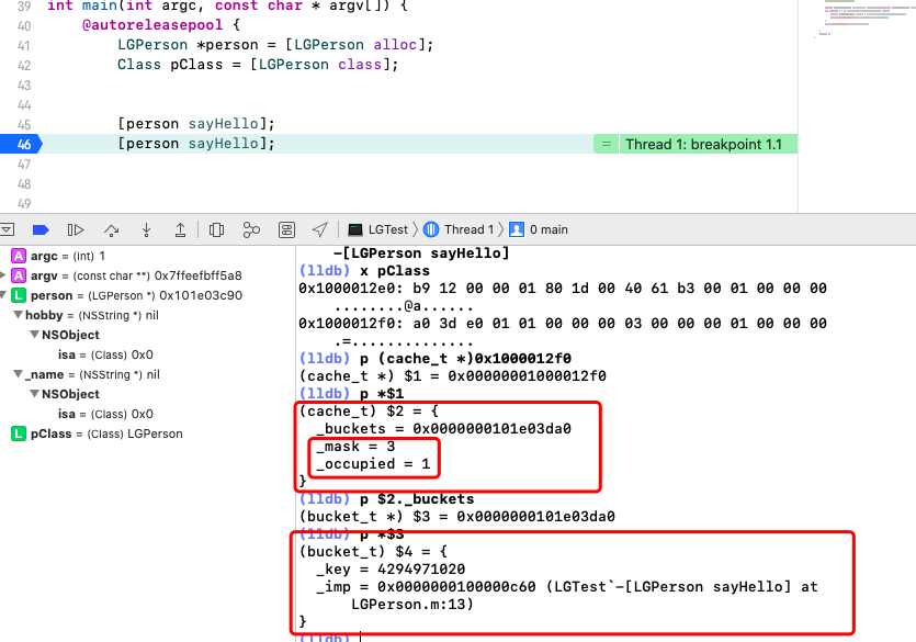 看上图我们了解sayHello这个方法的确是缓存在了cache_t里面,