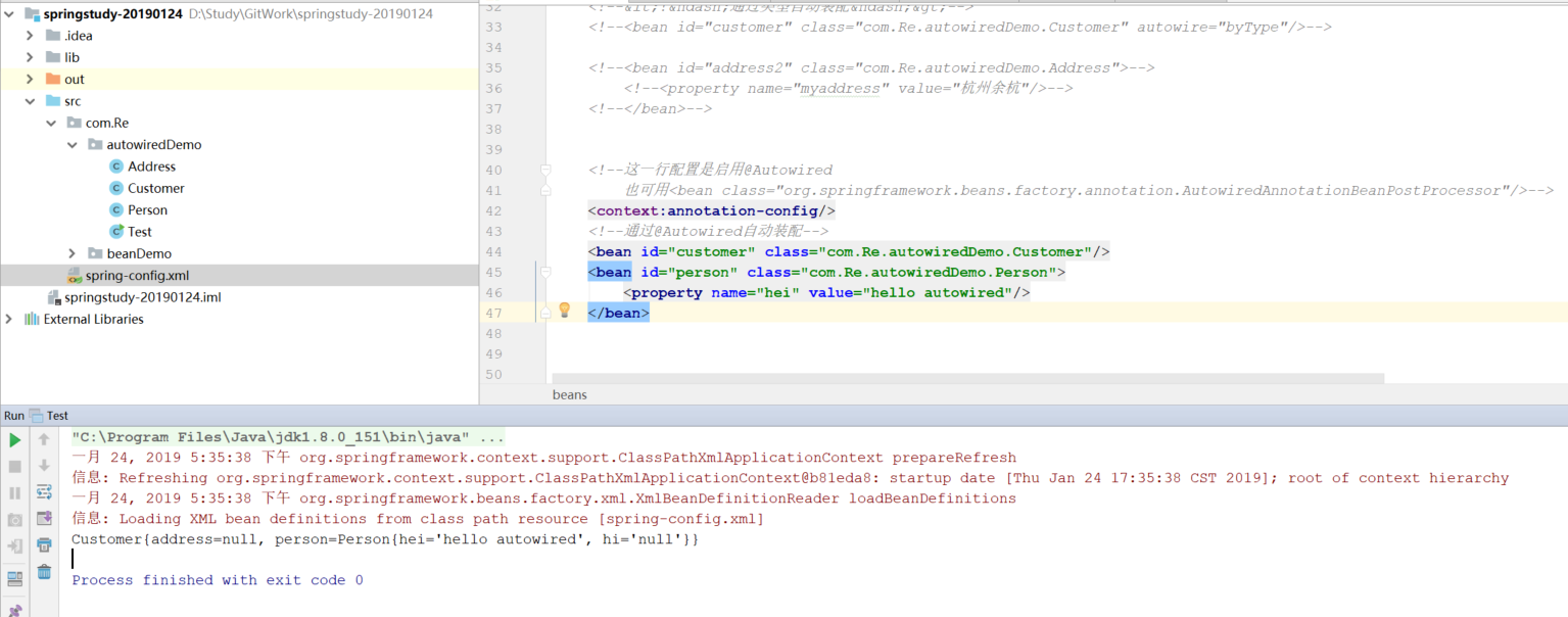 <!--ref="person"指向"<bean id="person" class="com.Re.autowiredDemo.Person"/>"–>-->