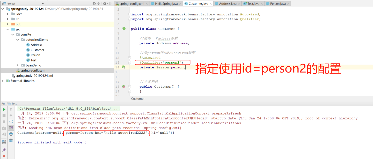如果有多个person bean配置,那么要用@Qualifier注解指定使用哪个bean