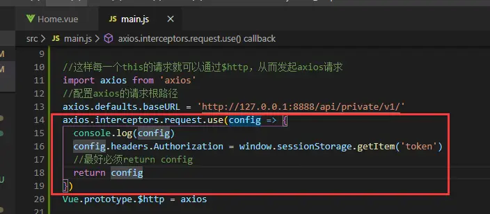 config.headers.Authorization = window.sessionStorage.getItem('token')