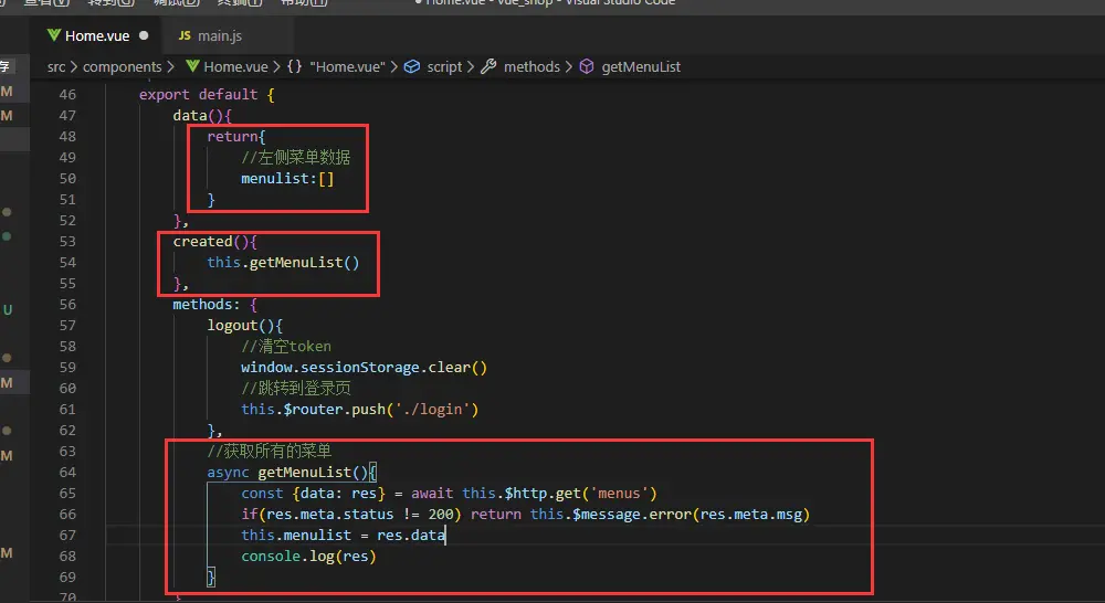 获取左侧菜单数据