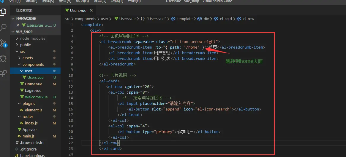 在Users.vue里面添加