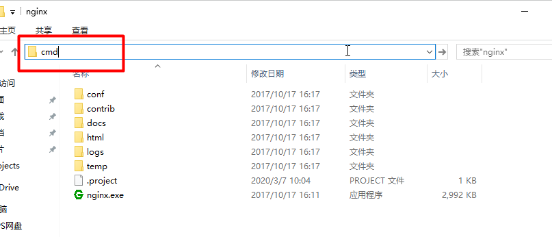 我们打开我们的项目根目录,然后在上面的地址栏输入cmd,再按回车,命令行就会弹出