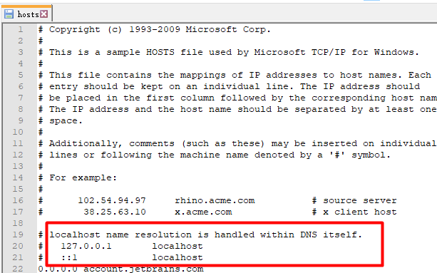 我们可以看到,我们的配置文件已经把localhost映射到了127.0.0.1(其实就配置了本机解析)。不好意思扯远了,这个我们当额外知识进行了解。