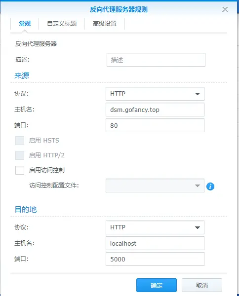 访问 http://blog.gofancy.top/ -> http://blog.gofancy.top:5000/nginx 会将子域名重定向到DSM端口