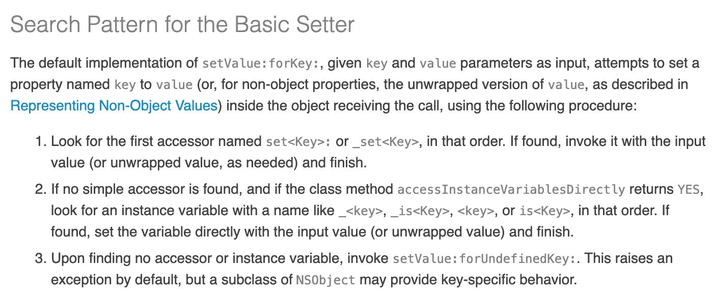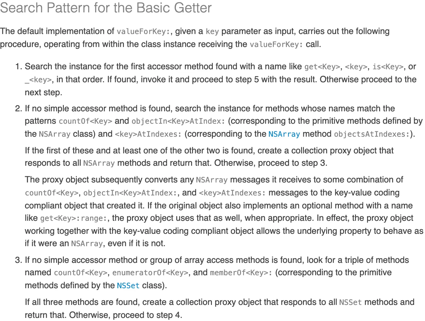 以上就是KVC赋值和取值的底层原理了,主要是通过查看官方文档来了解,也说明了官方文档是很重要的,有问题还是应该及时去官方文档查看。