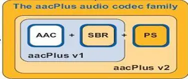 HEv2:用容器的方法包含了HE-AAC v1和PS技术。PS指“parametric stereo”(参数立体声)。原来的立体声文件文件大小是一个声道的两倍。但是两个声道的声音存在某种相似性,根据香农信息熵编码定理,相关性应该被去掉才能减小文件大小。所以PS技术存储了一个声道的全部信息,然后,花很少的字节用参数描述另一个声道和它不同的地方。