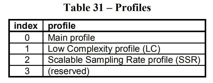 为了适应不同的应用场景,AAC定义9种Profile