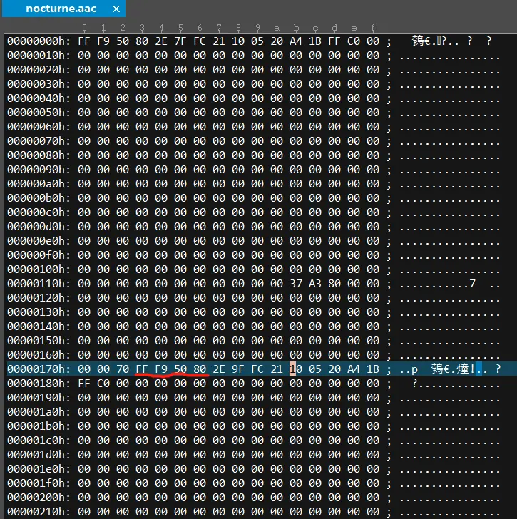用二进制查看工具打开一个aac文件,如下图: