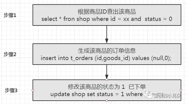 2、mysql的悲观锁实现 假设有这么一个场景。你现在负责一个订单模块,要写一个下单的方法。有一张商品表,商品的状态是 “0 未下单 1 已下单”。 正常的逻辑如图: