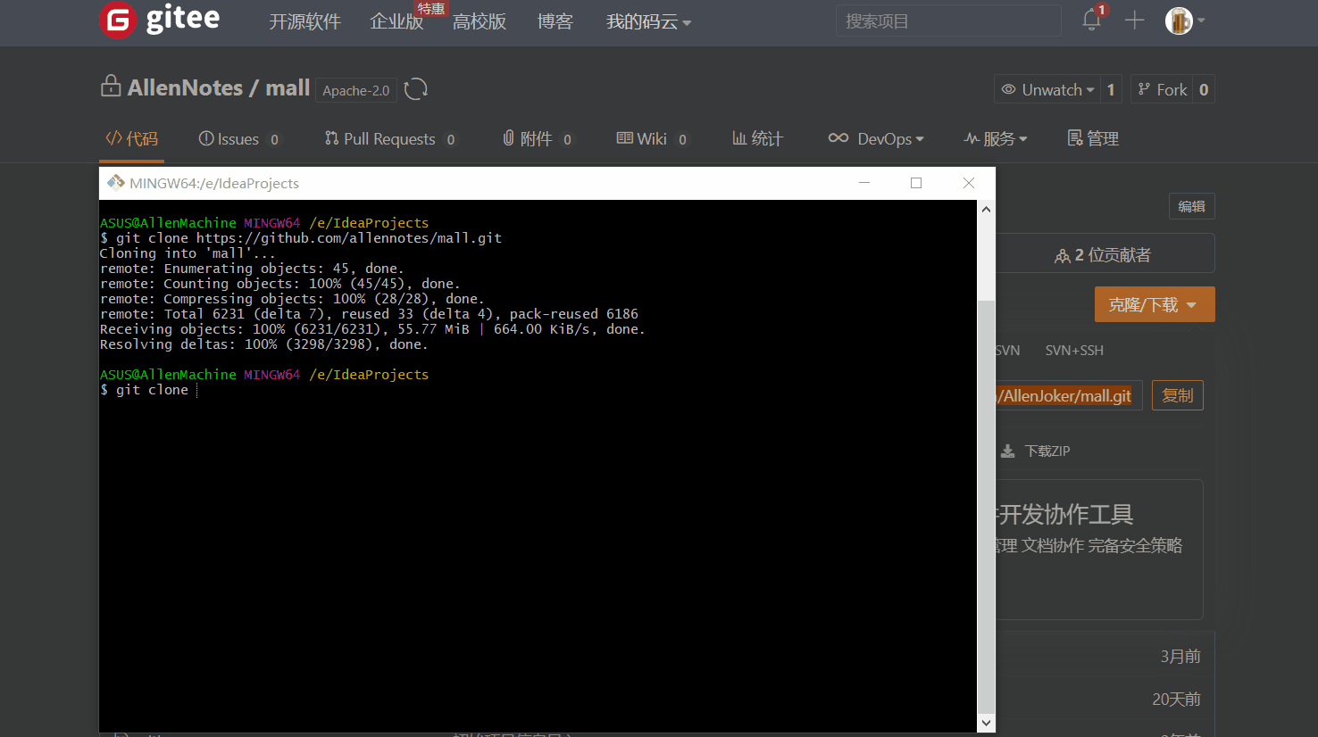 其实我这里感觉还是挺快的. 但是我想更快.那么就要借助国内的代码托管社区码云.操作如下