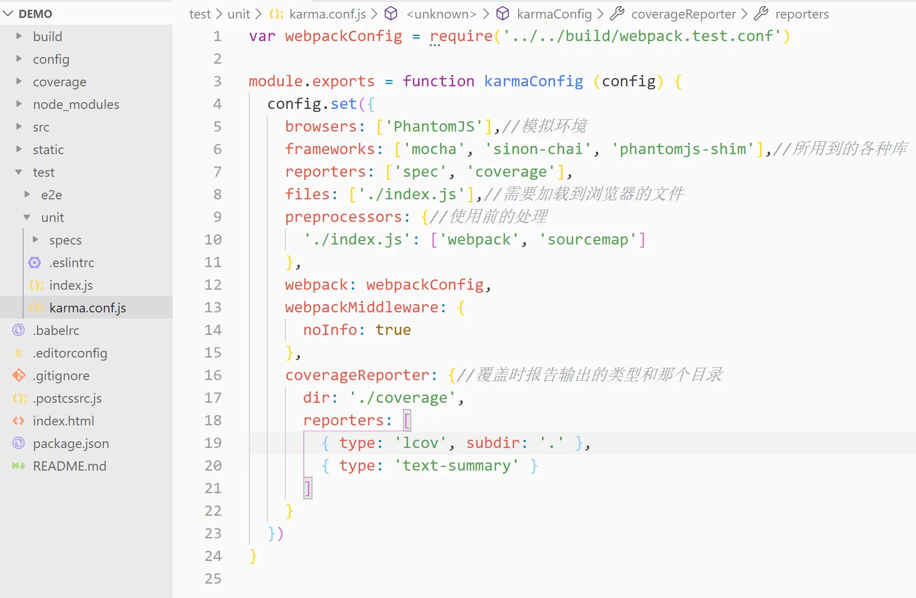 test文件下unit文件下的karma.conf.js文件详解