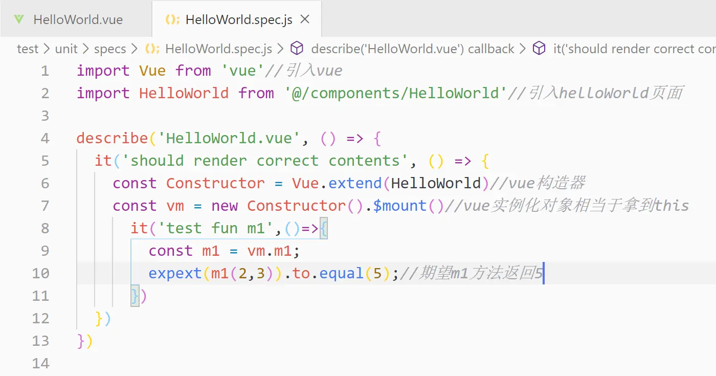 test文件下unit文件下的specs文件下对应的js文件就是你相应的vue文件编写的对应的单元测试页面js