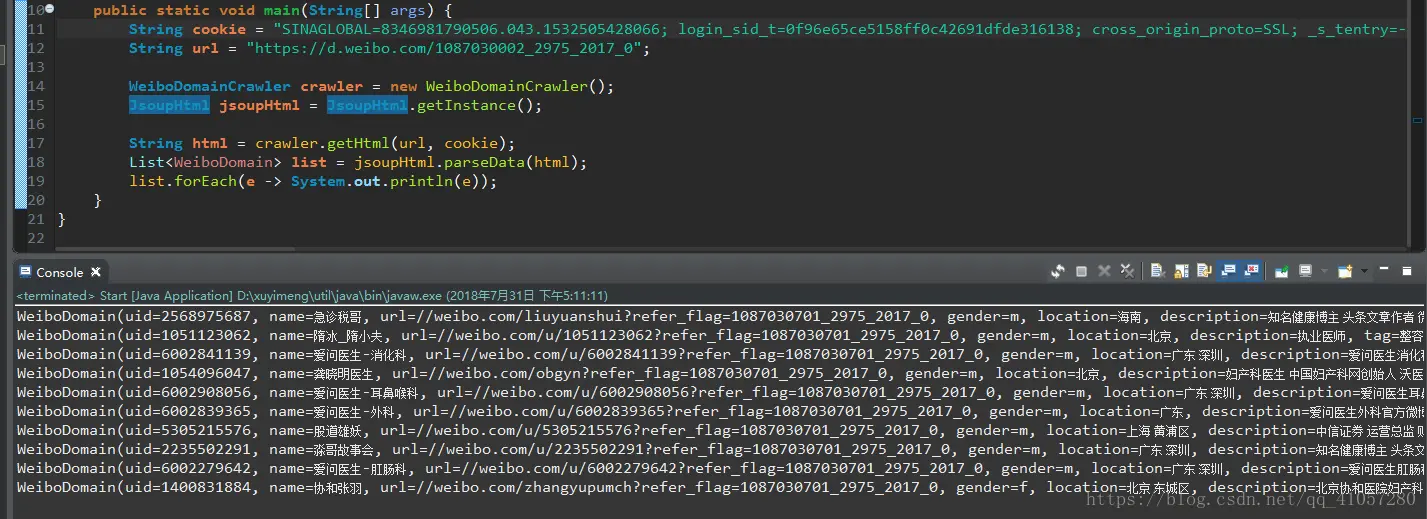 JAVA微博爬虫基础篇——简单的微博爬虫(手动cookie)