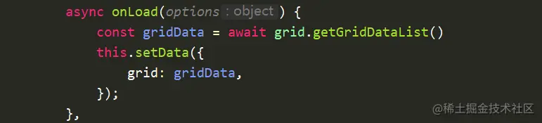 ps:onload是小程序生命周期中的页面加载前的钩子函数,使用async与awite,并使用this.setData设置data中grid的数据