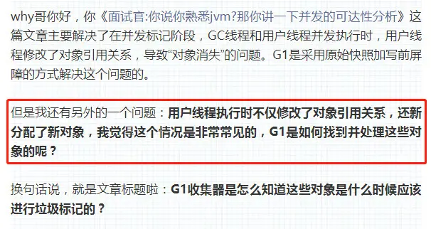 只要清楚了全局并发标记阶段,就可以解答文中抛出的这个问题: