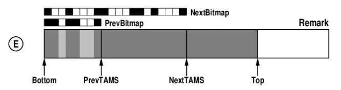 我们可以假设 E 代表的是第 n 轮回收的过程的Remark阶段。那么 PrevBitmap 就是第 n-1 轮的标记结果。