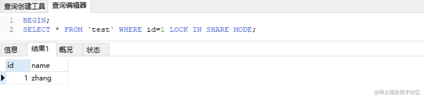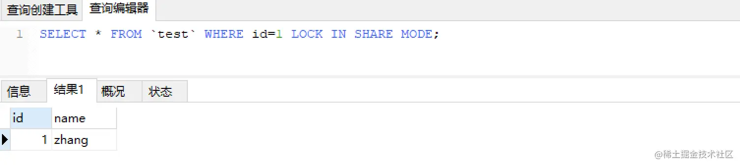 SELECT * FROM `test` WHERE id=1 LOCK IN SHARE MODE;