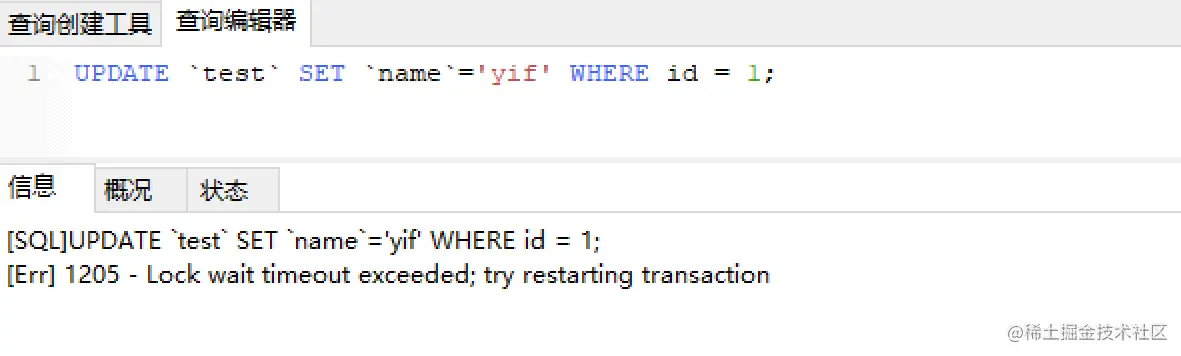 上面语句我并没有提交或者回滚事务,所以一直把锁加着