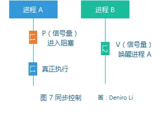 要用 P, V 操作实现进程同步,需要引入私有信号量。注意:私有信号量只与制约进程和被制约进程有关,而不是与整组并发进程。与此相对,进程互斥使用的信号量为公用信号量。