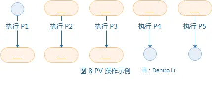 以下是 PV 操作与前趋图结合的示例。假设进程 P1、P2、P3、P4 和 P5 的前趋图如图 7 所示: