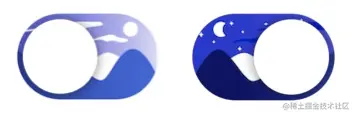 前段时间在做自己 App 适配 Dark Mode 的时候看到了一个Procreate的动画教程以及该视频简介中的灵感来源,觉得还挺有意思的,想着复杂的东西我做不出来做个这个总可以吧嘿嘿嘿,于是准备仿照风格着手实现一下。下图我实现的效果,左边是白天,右边是黑夜。