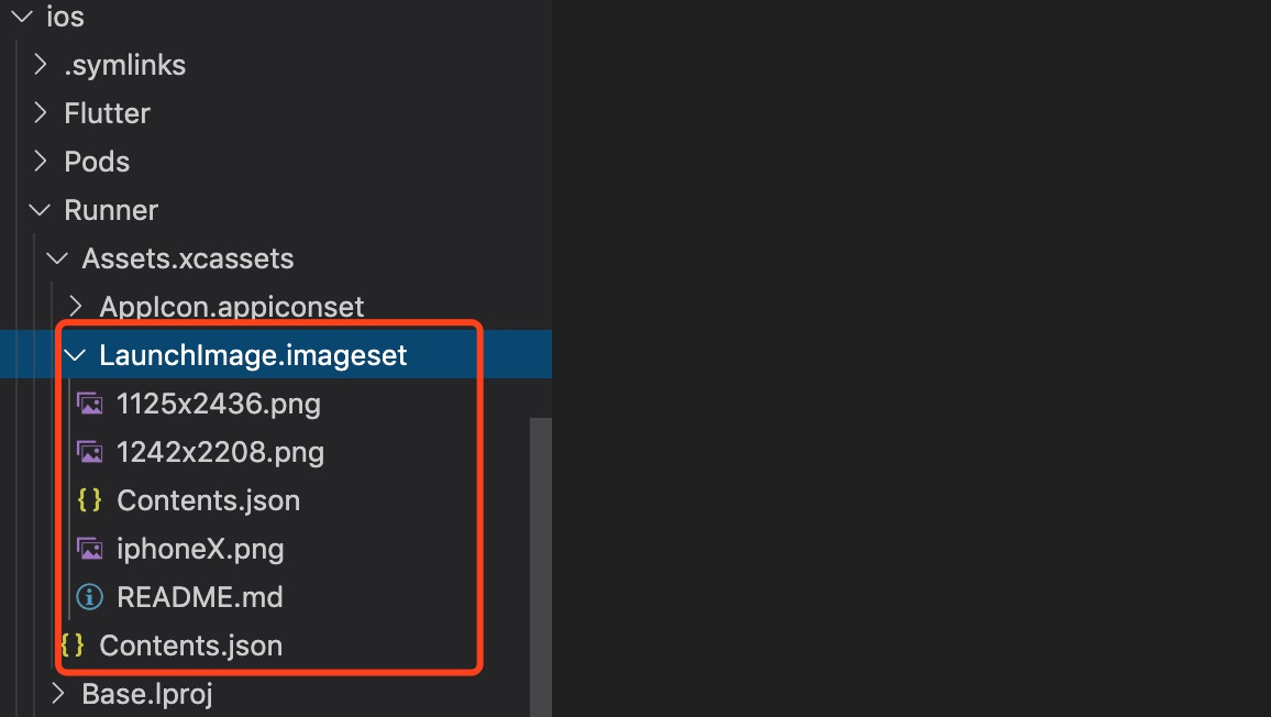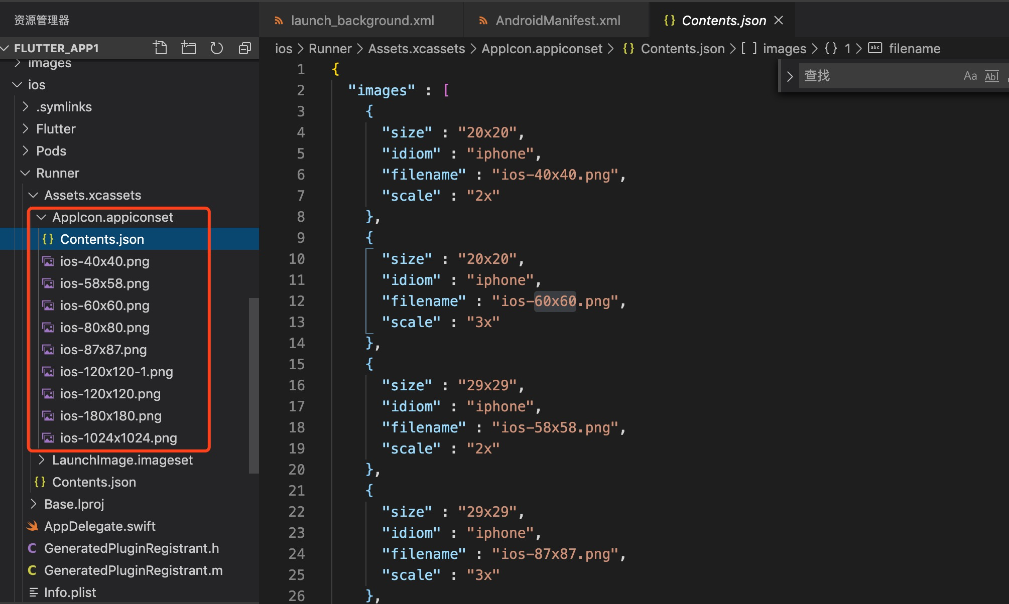 在ios/Runner/Assets.xcassets/AppIcon.appiconset中放入不同尺寸图标