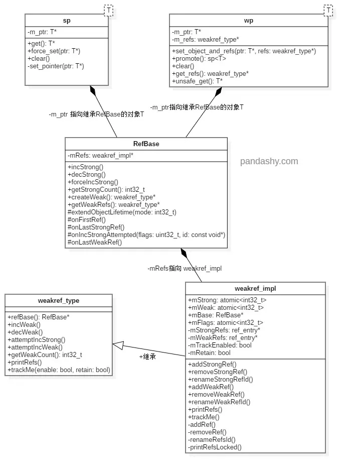 - RefBase 类是 sp/wp 模板类中对象的父类