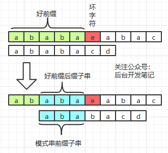 我们是怎样查找到的最长好前缀的后缀子串呢?如图: