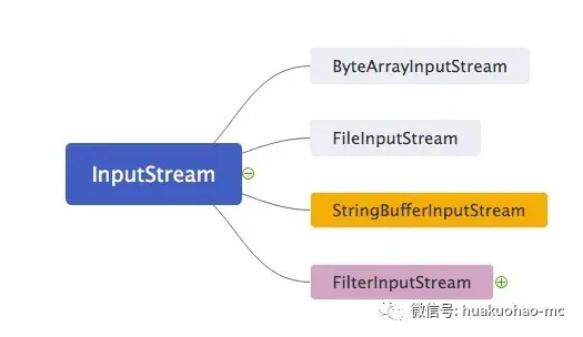 所有的跟输入相关的字节流都继承自InputStream。这是一个抽象类。它有几个比较常用的直接子类,每个直接子类代表了一个数据源,比如 ByteArrayInputStream 表示将内存缓冲区中的字节数组当作输入源。 表示将StringBufferInputStreamString对象作为输入源,现在已经不推荐使用了,推荐使用StringReader读取String对象。后面介绍字符流的时候还会说到这个类。FileInputStream 表示将文件作为数据源,这也是大家平时用的比较多的。
