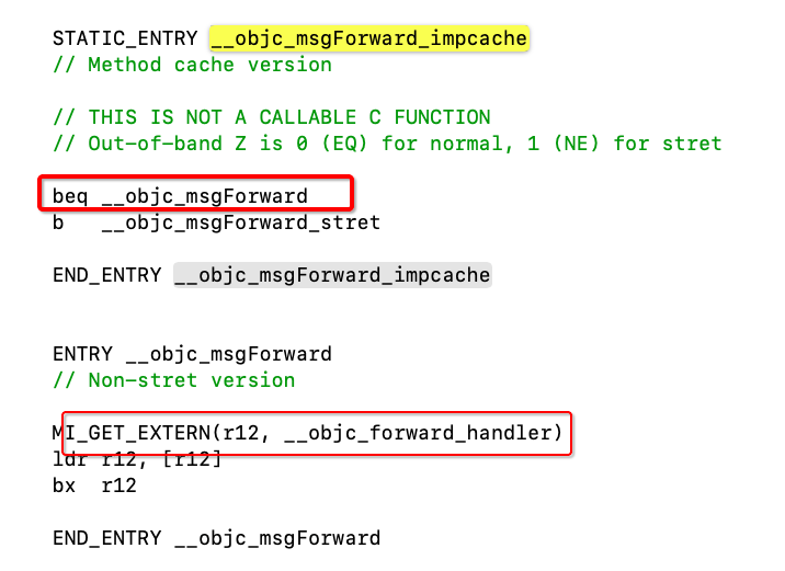 __objc_forward_handler,从汇编调用OC方法,如下: